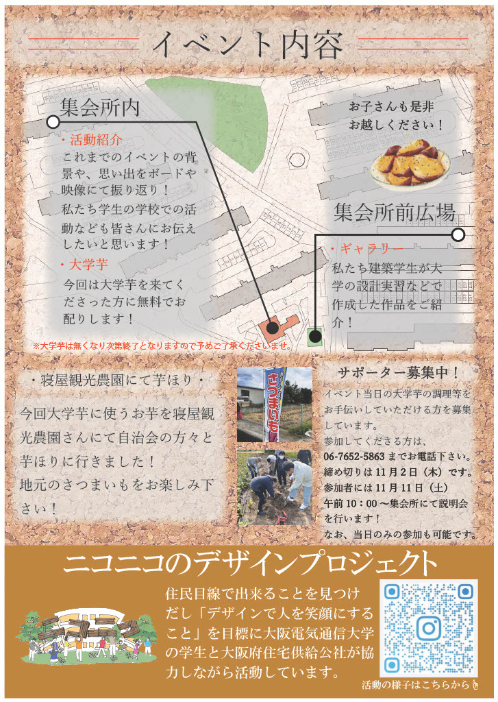 11/18(土)香里三井団地集会所付近にて「活動報告会イベント」を開催いたします。