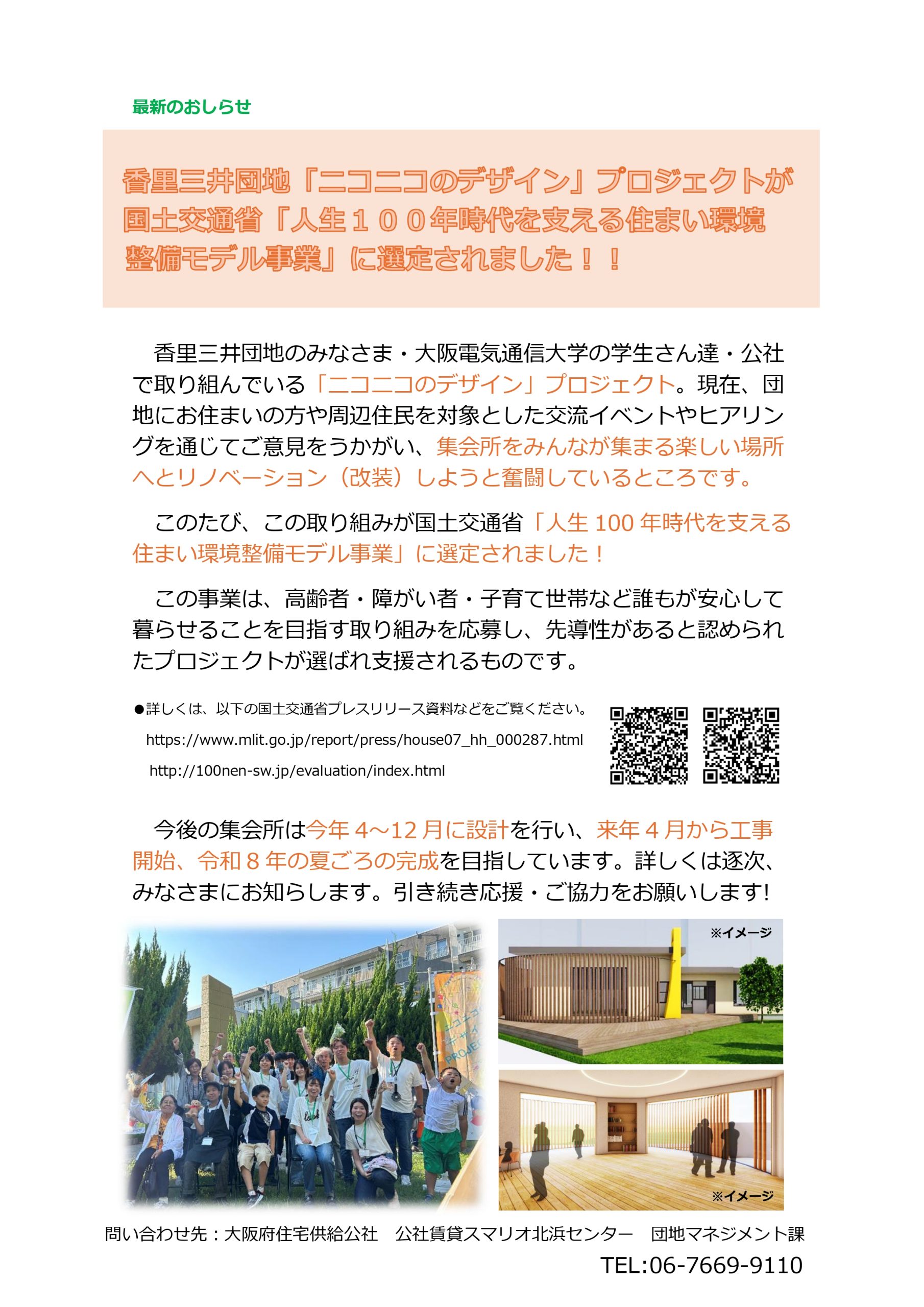 この度、「ニコニコのデザイン」プロジェクトが国土交通省『人生100年時代を支える住まい環境整備モデル事業』に選定されました!!