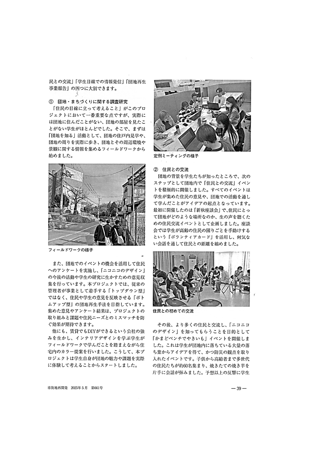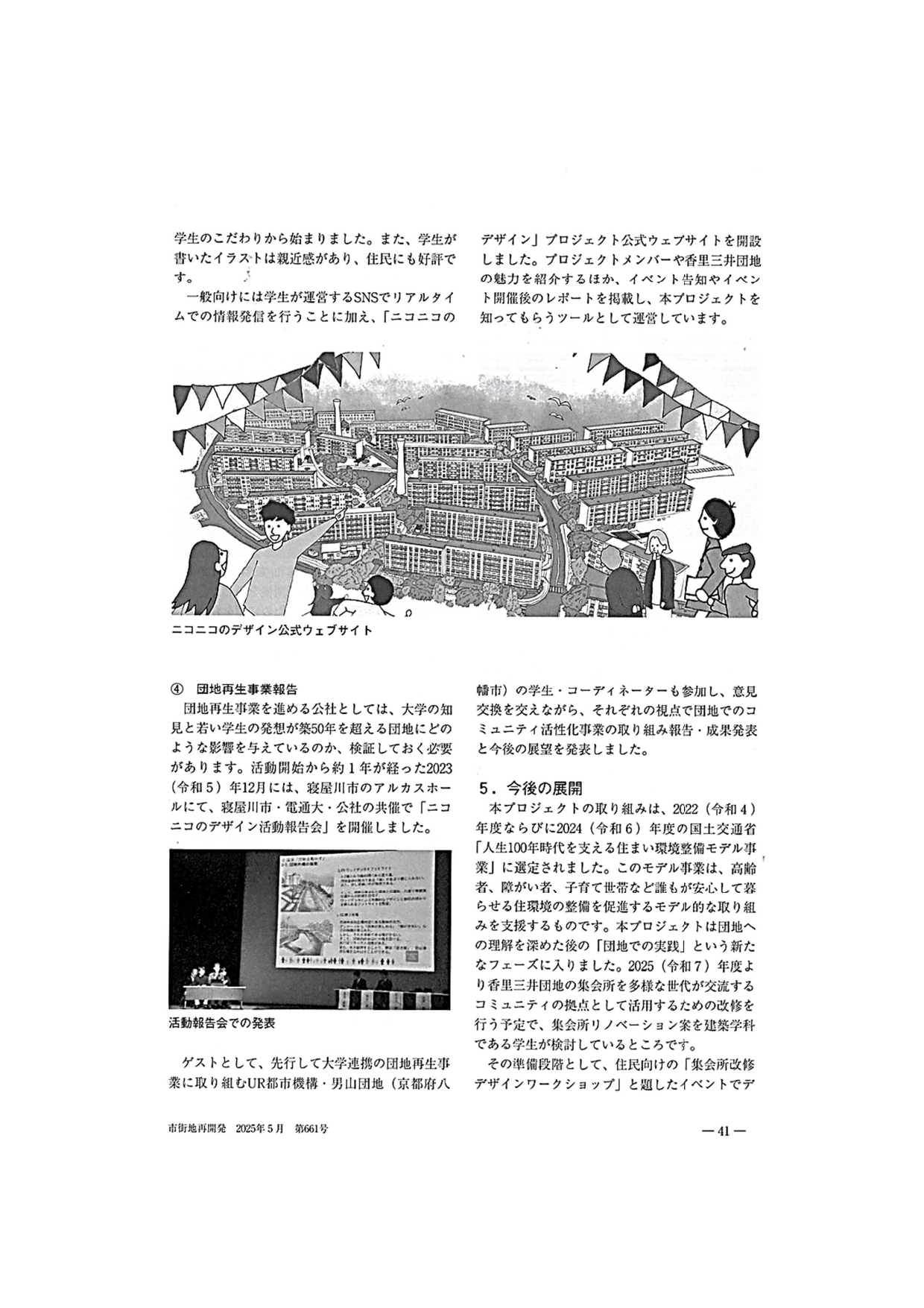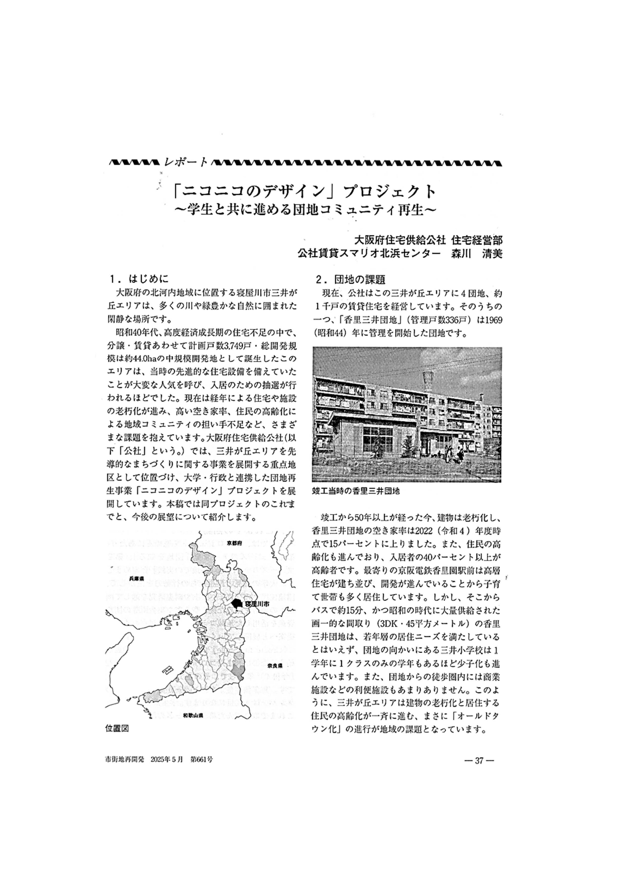 当協会より「ニコニコのデザイン」プロジェクトに関する寄稿の依頼があり、協会の機関誌『市街地再開発』2025年5月号に掲載されました。