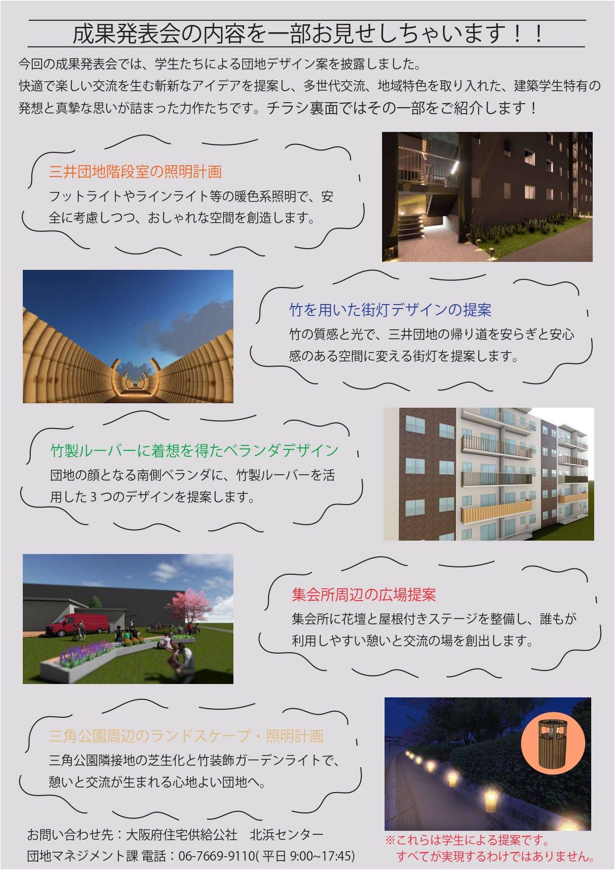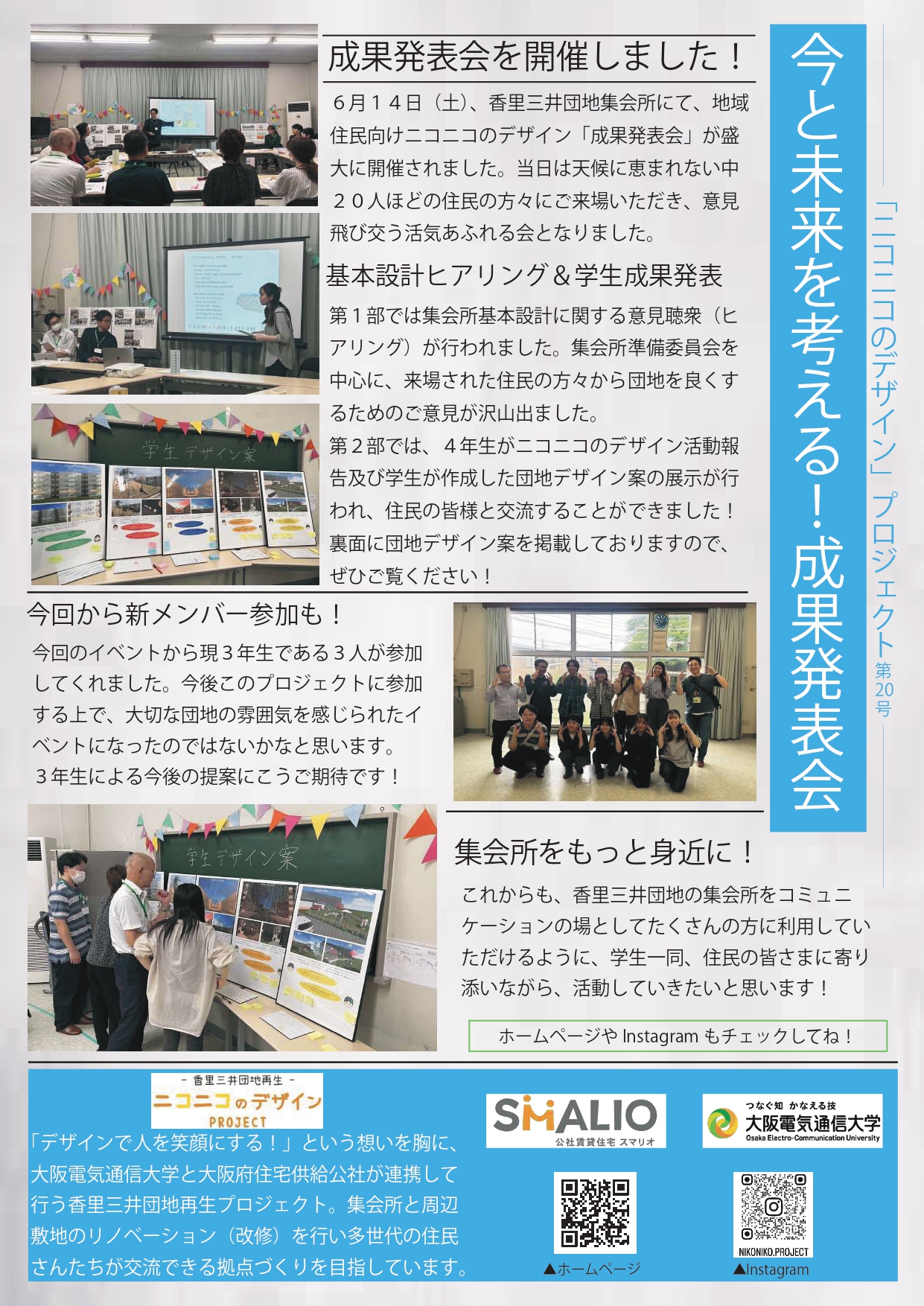 後半はニコニコのデザイン成果発表と学生が実現したい団地デザイン案のお披露目を行いました🏠