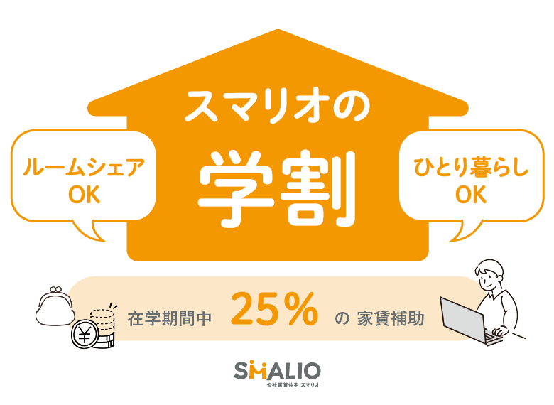 「スマリオの学割」は、「家賃や初期費用のコストをなるべく抑えたい!」という学生のみなさんにオススメ。