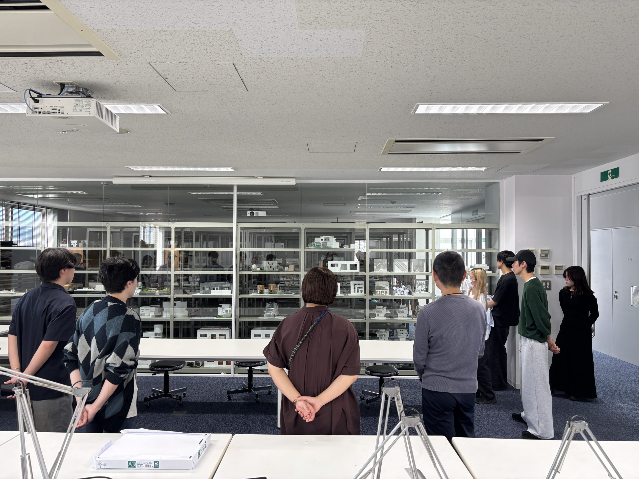 最初に建築学部の皆さんが通っている校舎を案内してもらいました。