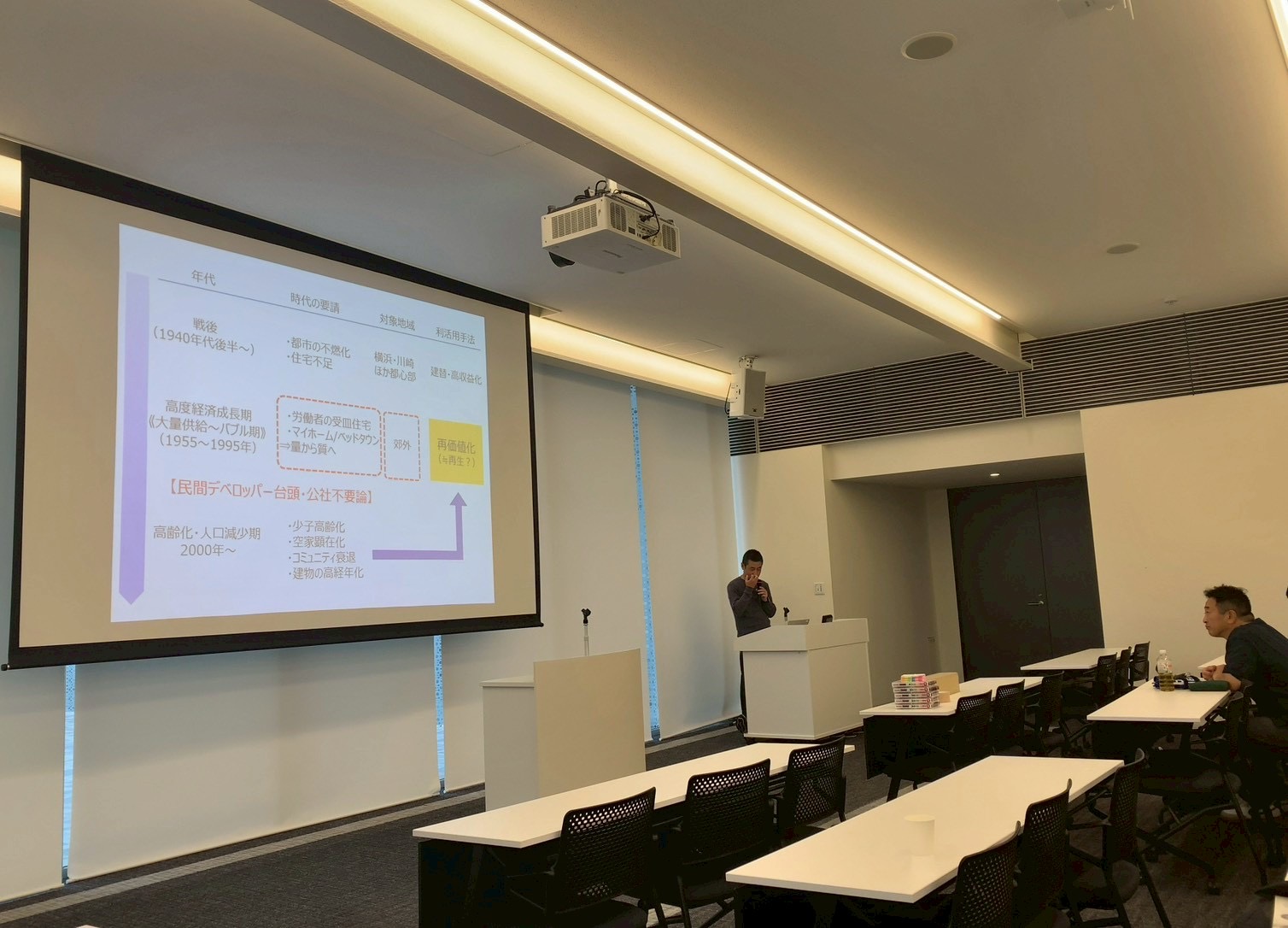 地域の価値創出を目指した団地のリノベーションデザインの紹介や、来年度リノベーションされる香里三井団地の集会所設計の詳細など、団地に必要とされているデザインの考え方を学ぶことができました。
