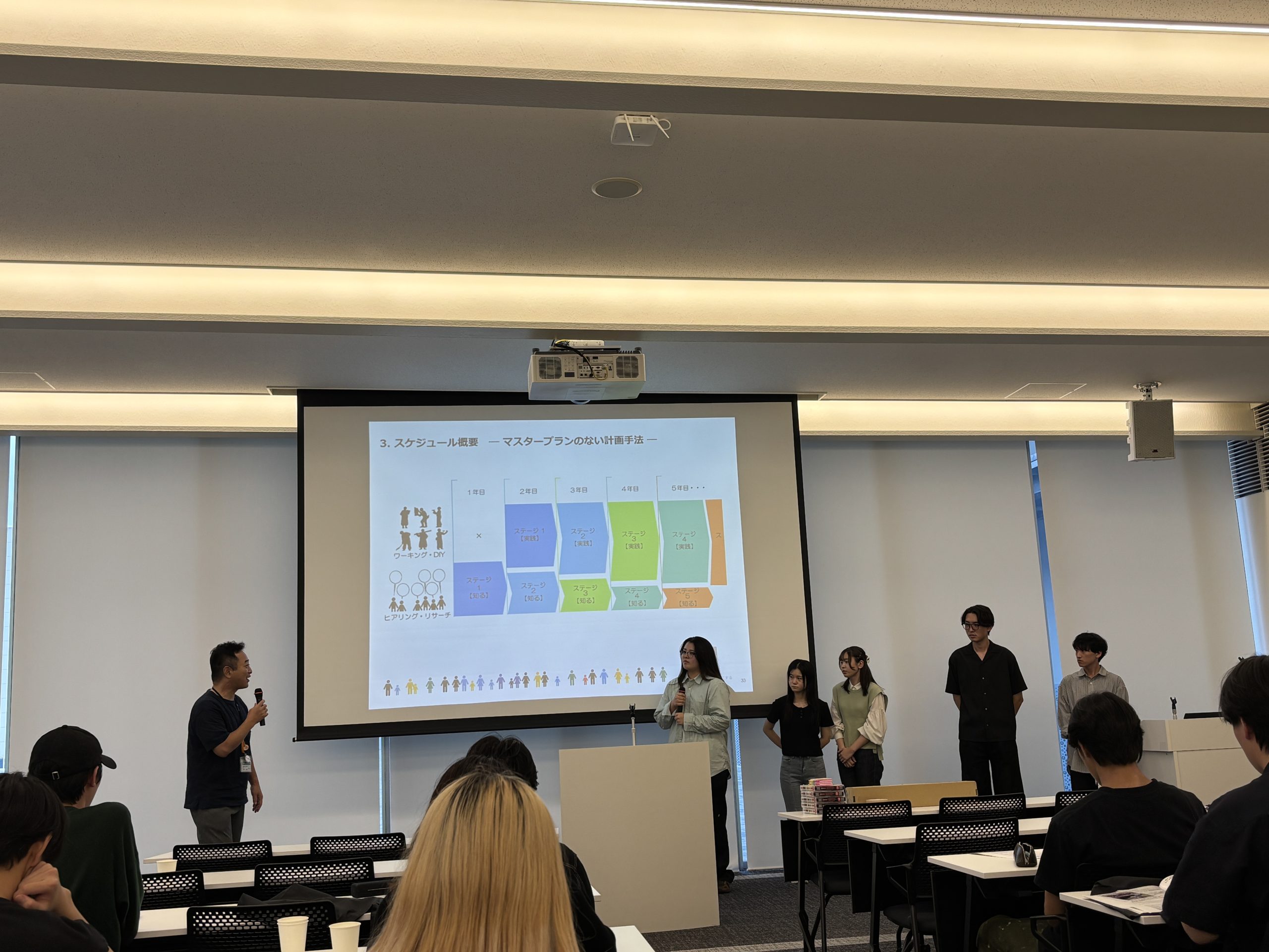 今日と今までの経験の中での課題解決として、住民さんに喜んでもらえるイベントやワークショップの提案を発表した班もありました。
